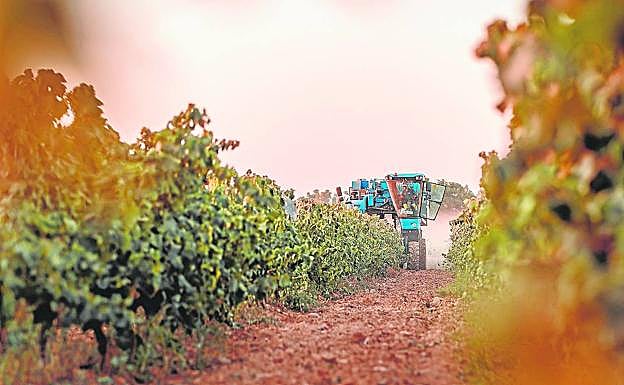 En la parcela 'Las Veguitas', en el término municipal de Montijo, Regino Grajera mira el viñedo, lo aclarea quitándole hojas y espera que la cosechadora ... haga su trabajo cuando apenas ha salido el sol. «Desde las doce de la noche está aquí. La verdad es que con esto el problema de mano de obra para la cosecha se ha acabado», reflexiona Grajera, agricultor de Arroyo de San Serván, en la comarca de Mérida, mientras la máquina empieza a llevarse decenas de kilos de uva blanca, variedad macabeo, hacia un remolque. Minutos más tarde se depositará el producto en la cooperativa arroyana de Nuestra Señora de Perales.