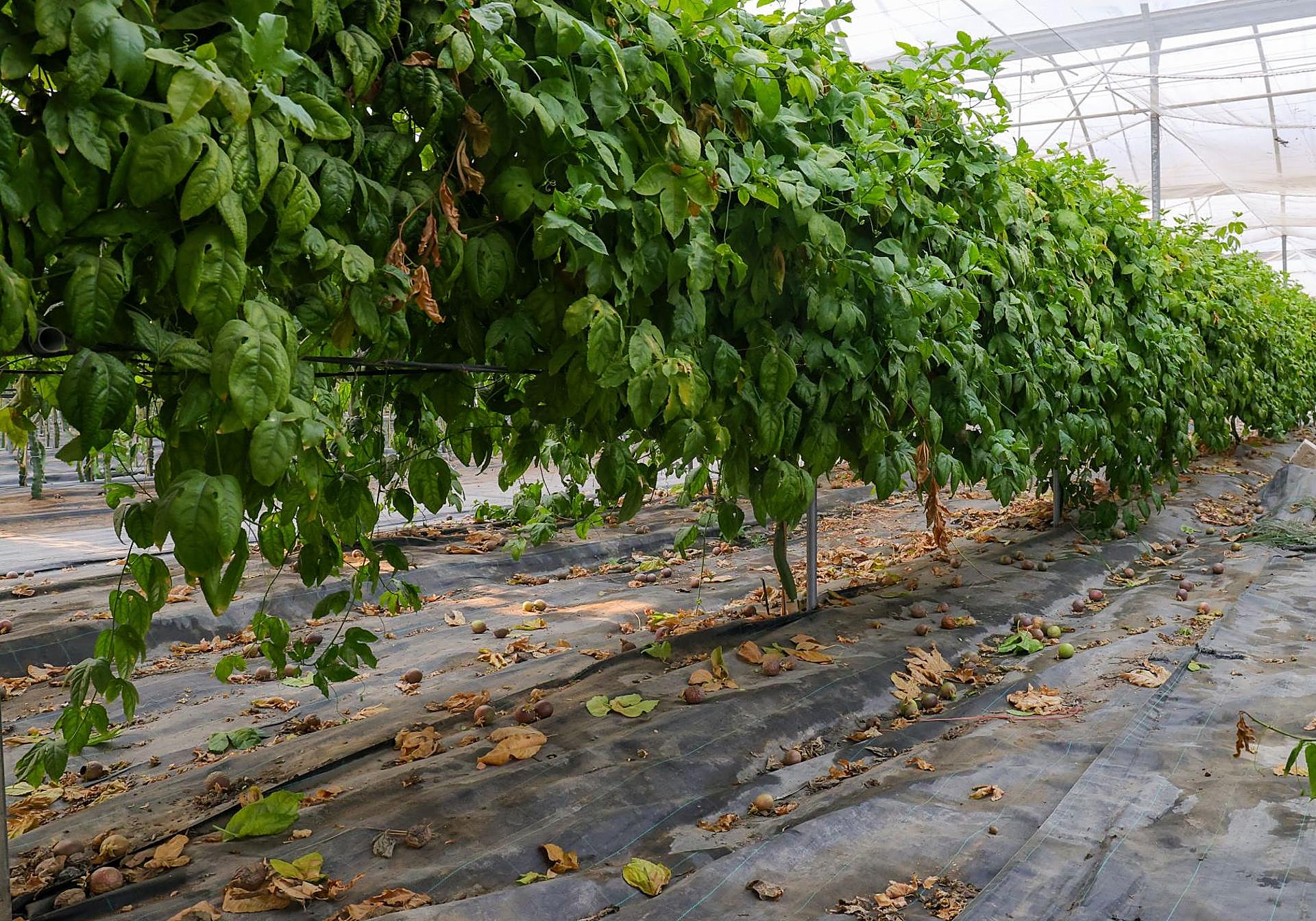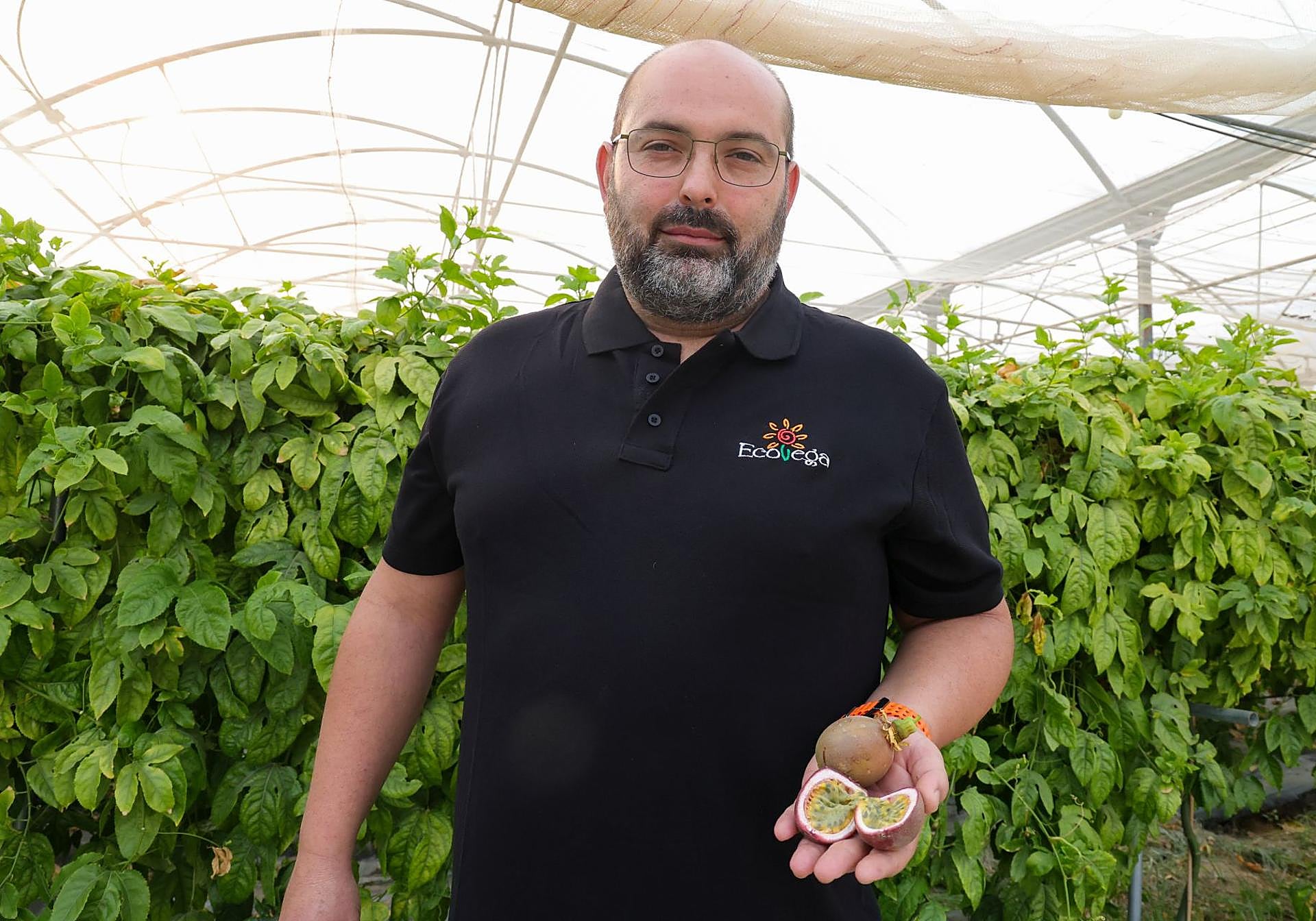«Es una zona pequeña de experimentación porque es una fruta que me gusta, al igual que la pitaya, y queríamos probar si se podía hacer aquí», dice sobre este campo de experimentación en Eco Vega, empresa que apuesta por la agricultura ecológica y que en sus instalaciones en Don Benito cultiva además otras frutas como la exótica pitaya, también conocida como fruta de dragón, o distintas variedades de melón. Con el maracuyá lleva tres años y el balance es positivo.