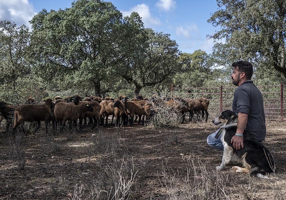 José Antonio Díaz es el encargado de los animales de la finca del Baldío de Talaván. Él es quien se levanta, arregla lo que haya que arreglar y va con las ovejas merinas negras a pastorear. Siempre lo hace con Miguelito, un border collie joven, nervioso por perseguir al ganado. Cerca, tres gatos —que en la finca llaman los «gatoperros»— los siguen a todos lados, aunque se esconden en los matorrales cuando notan tanta oveja. Y detrás de esa comitiva va Trueno, un perro guardián que tiene mucho de lo primero y poco de lo segundo. Parecen felices.