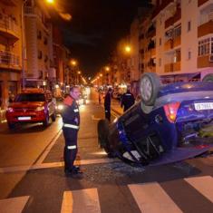 Un Renault Clio ocupado por dos jóvenes de 25 años volcó ayer en la avenida Corte de Peleas