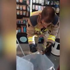 Los bomberos rescatan a una culebra en la persiana de un local en Badajoz