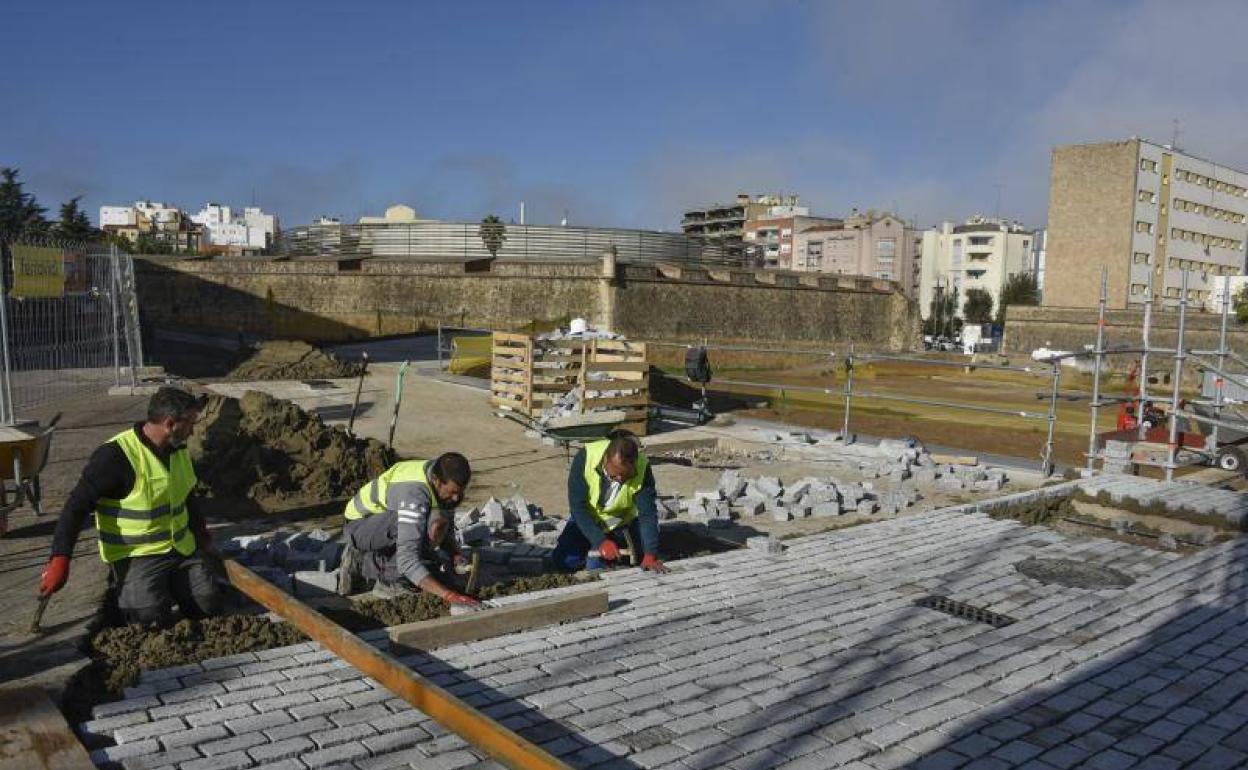 Esta obra es una de las más ambiciosas de las que se realizan con los fondos europeos Edusi y tenía inicialmente asignados 2,1 millones de euros. Ahora van a ampliar la partida en 400.000 euros para hacer visibles los restos que han encontrado durante el desarrollo de la obra. Tenían constancia de ellos por planos antiguos, pero ahora pueden dejar a la luz parte de la historia de la ciudad. Se trata de los restos de dos plazas de armas y del revellín (talud de tierra para parar los cañonazos) que atraviesa la calle Stadium de manera subterránea para meterse bajo el colegio de la Compañía de María.