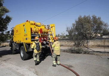 Los bomberos apagan un fuego en Valdepasillas junto a la zona del mercadillo
