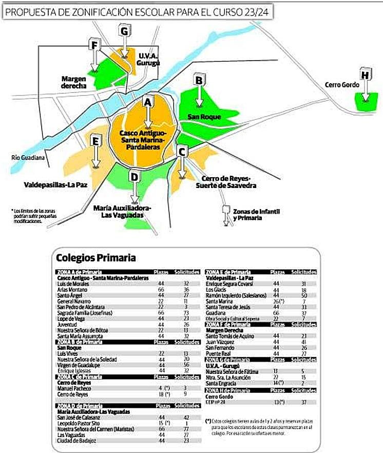 El grave problema que se da en el Cerro Gordo no se repite en ningún otro área educativa de Badajoz. Quedan libres el 23,8% de las plazas que se ofertan. Los 36 colegios de Badajoz tienen 1.386 plazas para niños de 3 años y quedan sin ocupar 331.