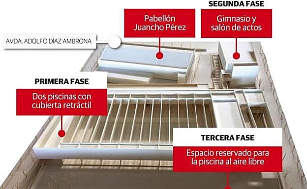 Para lo que hay presupuesto ahora –4,8 millones de euros aportados entre la Junta y el Ayuntamiento– es para ejecutar la primera fase del complejo deportivo. Contará con una piscina olímpica, que tendrá un muro para poder dividirla y darle distintos usos a la vez. Irá equipada con una cubierta retráctil para que pueda utilizarse durante todo el año. También se habilitará un segundo vaso para entrenamientos, clases y uso infantil.