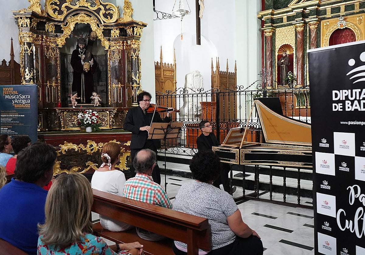 Los asistentes pudieron disfrutar de la música que emanó del violín y del clave tocados por Gandía e Ibarra, en el concierto de música barroca que se celebró en el marco del XXVIII Festival de Música Sacra y Antigua. El evento estuvo organizado por la Sociedad Filarmónica de la ciudad y patrocinado por la Diputación de Badajoz. Este ciclo se celebra desde el 15 de septiembre hasta el 1 de octubre.
