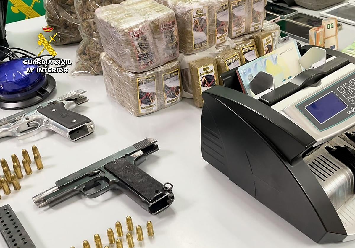 En todas estos domicilios se incautaron de trece armas largas y dos cortas (algunas de ellas sustraídas y con números de serie borrados), armas blancas, chalecos antibalas, joyas ya reconocidas y devueltas a sus legítimos propietarios, hachís, marihuana y algo más de 12.000 euros. Además, los agentes han recuperado un vehículo sustraído en Alcalá de Henares (Madrid).