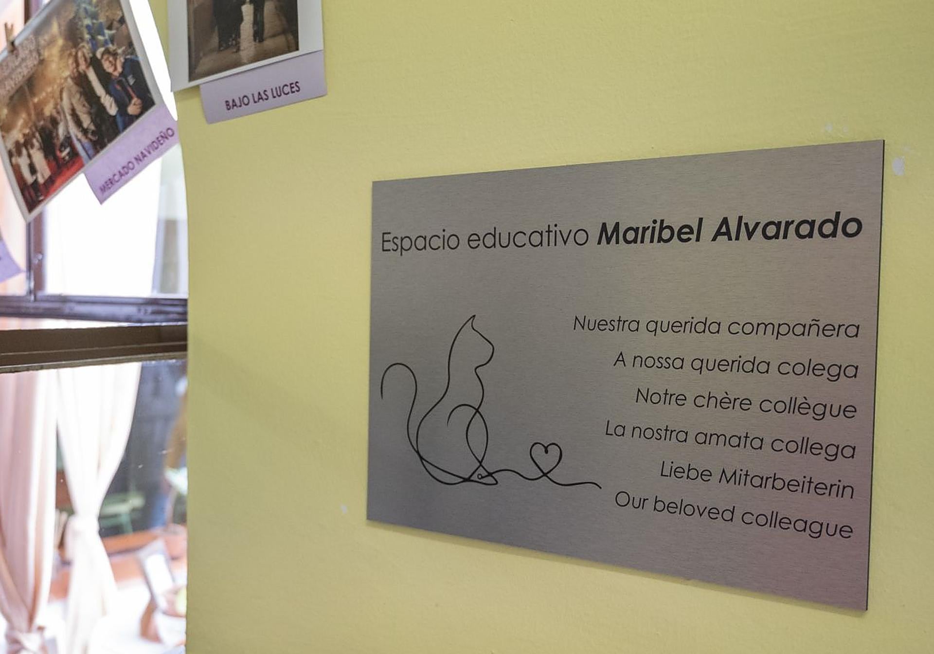 Ahora sus rotuladores de colores llenaron los lapiceros del departamento de inglés. Allí aún queda algo de Maribel, también en la placa donde junto a un gato se lee 'A nuestra querida compañera Maribel Alvarado' que en el patio de la EOI seguirá siendo testigo de las conversaciones en inglés que mantengan los alumnos del centro.