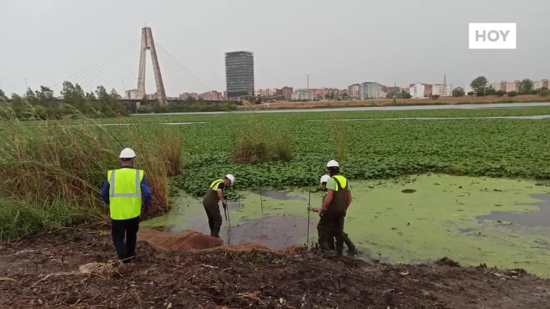 Empieza la colocación de mantas vegetales para secar el nenúfar La Junta realiza esta prueba para comprobar si puede ser una medida eficaz contra la plaga que invade gran parte del río a su paso por la ciudad Casimiro Moreno Badajoz Martes, 14 de septiembre 2021 | Actualizado 15/09/2021 05:54h. Compartir Reporta un error Sobre la firma Casimiro Moreno Fotógrafo en diario HOY hasta 2025.
