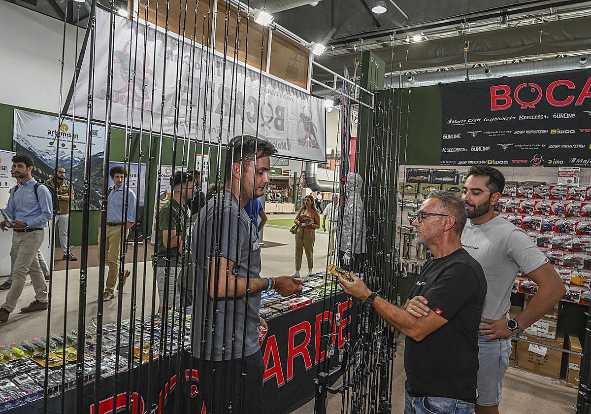 Quienes se acerquen a la feria encontrarán más de 200 firmas comerciales. Desde los atrayentes para presas de caza de Naturhunt a la peletería de Carola&Borralho y sus capas portuguesas. Las anchoas del cantábrico y las chacinas de ciervo encuentran su público en una feria que es el sueño de pescadores y cazadores en Extremadura.