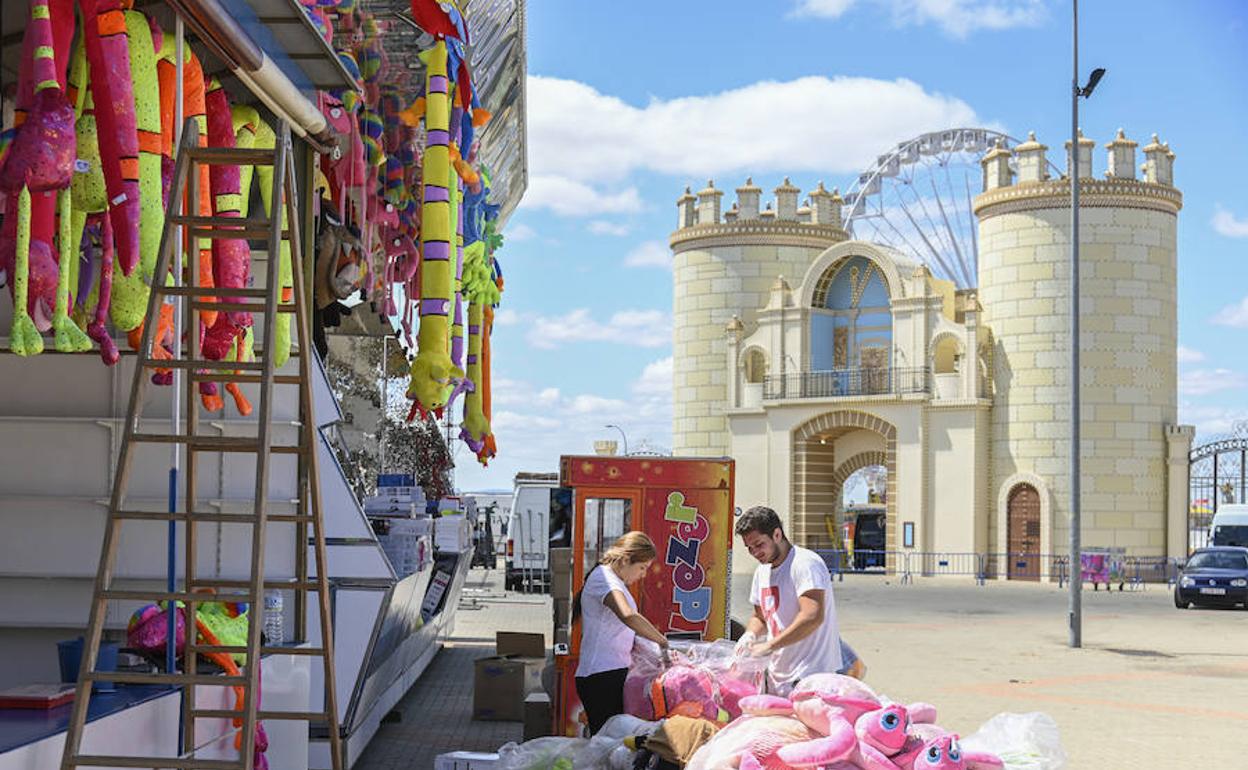 Trapo, martillo y pintura en mano. A pocas horas de que comience oficialmente la feria de San Juan, en el real ya está todo listo y los feriantes dan los últimos retoques para que cacharritos, casetas y tómbolas funcionen a pleno rendimiento durante los próximos nueve días. Badajoz desde esta noche vivirá en Caya. A las 22.30 horas, las 26.000 bombillas colocadas en la portada del ferial se iluminarán seguidas de tres minutos de fuegos artificiales para dar la bienvenida a la feria. Este año, la gente volverá a entrar al real por la réplica de Puerta Palma, estrenada en 2018.