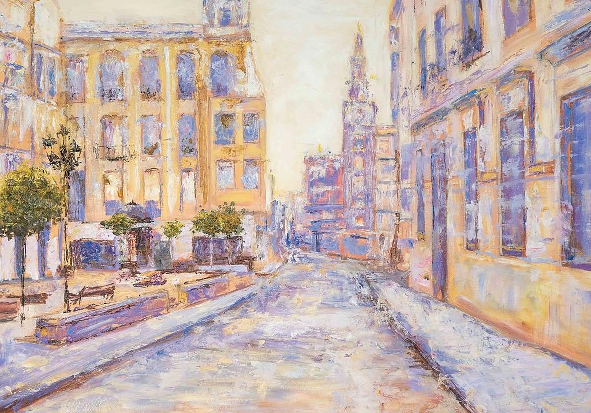 Un recorrido por Badajoz a lo largo de más de cuatro décadas. La Pinacoteca de la Fundación CB ofrece durante este mes de septiembre 'Badajoz, la ciudad retratada', una exposición que reúne varias obras que plasman la ciudad en lienzos, papeles y soportes múltiples desde 1978 a 2020.