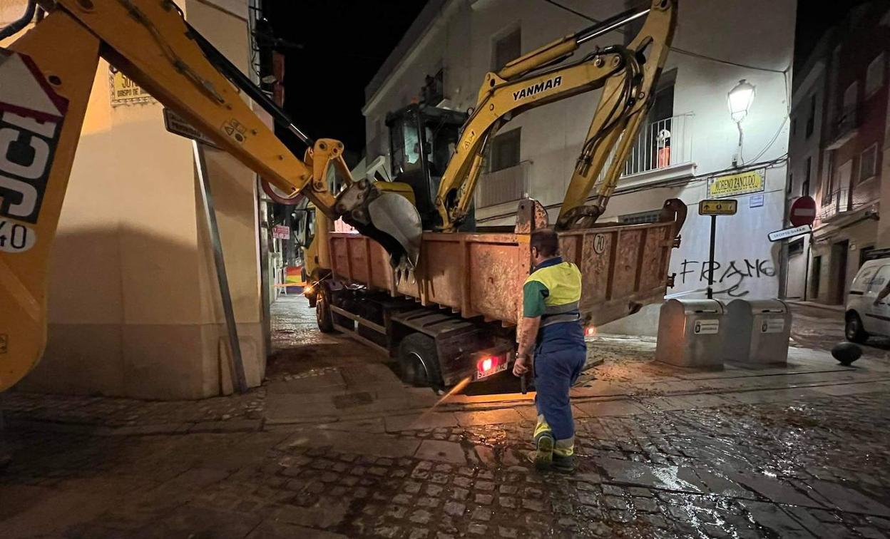 Se hunde un camión en la calle San Juan de Badajoz cuando reparaba una rotura de tubería