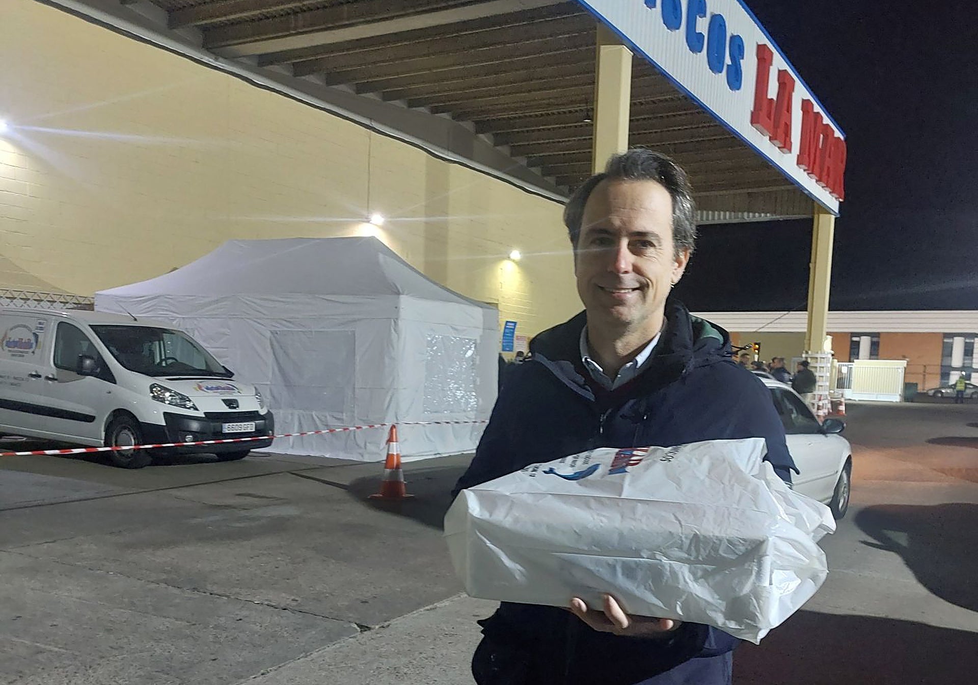 A las seis y veinte llegó Francisco Berengena. «Pensaba que sería de los primeros, pero he cogido el número 57». Fue pronto porque otra Navidad se presentó después de las siete y se encontró con más de cien números por delante. «Otro año no me vuelve a pasar eso, pensé, pero parece que nunca es demasiado temprano», dice con una bandeja en la mano una hora después de aparcar su coche dentro del recinto. «¿Merece la pena? Creo que sí, todo por pasar una buena fiesta. Somos cuatro hermanos y todos con familia, así que somos muchos». Por eso se lleva dos kilos y medio para una cena en el que cada uno aportará algo.