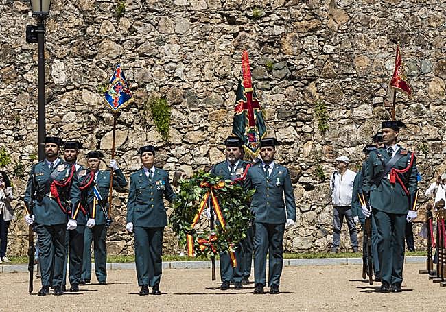 Ellos fueron los encargado de imponer las condecoraciones a los agentes que recibieron la Cruz al Mérito de la Guardia Civil, que este año ha sido entregada al teniente coronel de la Brigada Extremadura XI, Sergio Cobos Marquina, y a una docena de mandos y guardias que trabajan en Extremadura. Entre ellos, los sargentos N. Alberto García Montes y Fernando David Álvarez, la teniente Jessica Romero Vázquez y el subteniente José María Bernabé. A ellos se sumaron el cabo primero Francico Javier Quintana Solís y los agentes Rafael Vargas Pita, J. Antonio Ayuso María, Rafael Gómez Carrión, Antonio García Diaz, Purificación Toro Vacas, Ignacio Núñez Montero y Paula Arróniz Antúnez.