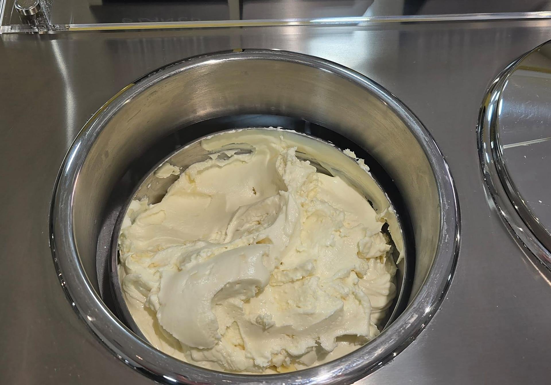 Al día siguiente se sigue con la mantecación, donde utilizan una máquina que introducen la mezcla líquida y sale en forma de helado.