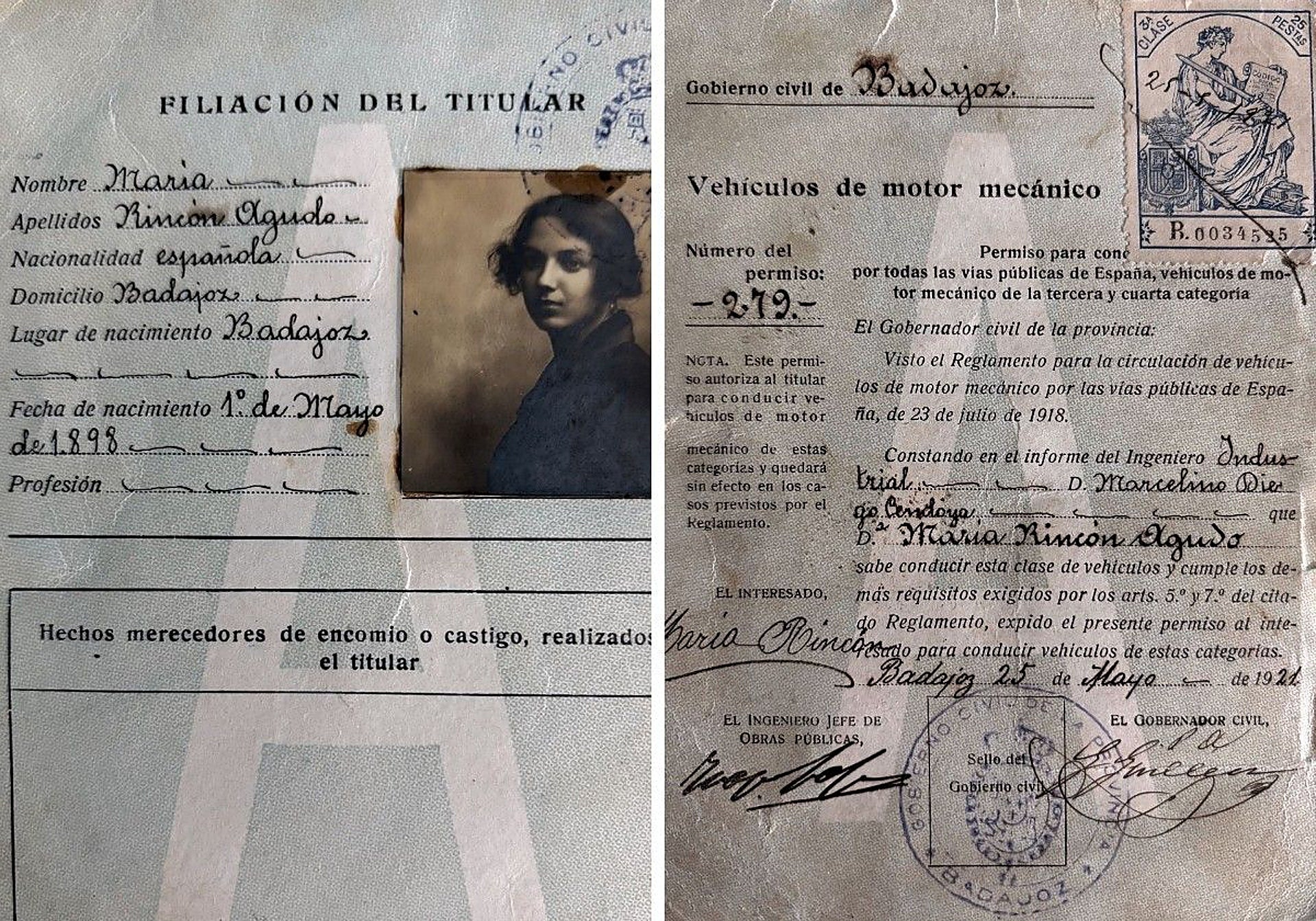 El hallazgo del carné de la pacense María Rincón Agudo desafía ambos hitos, porque fue expedido el 25 de mayo de 1921, cuatro años antes que la mujer que actualmente reconoce la DGT como la primera española con esta acreditación.