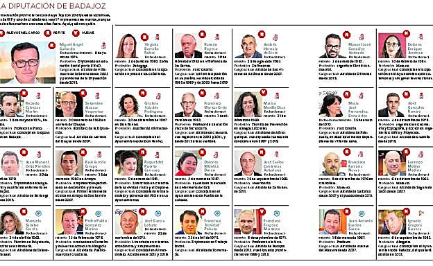 La novedad del PP está en que el alcalde de Badajoz, Francisco Fragoso, vuelve. Ya estuvo en la institución durante 14 años, pero la dejó cuando se convirtió en regidor. Fragoso, que también es presidente provincial de los populares, tendrá un lugar clave para intentar recomponer el partido en la provincia. El PP obtuvo 498 concejales el 26-M, lo que supone haber perdido 78 representantes en cuatro años. Fragoso se ha comprometido a dar el relevo en la Alcaldía a Cs dentro de dos años. Si se va del Ayuntamiento, deberá dejar la Diputación en ese momento