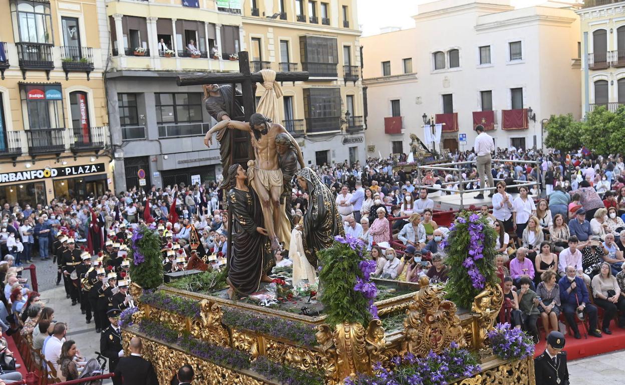 La Soledad y la Plaza de España estaban abarrotadas de público. En La Soledad fue necesario echar mano de la paciencia, aunque los pasos convirtieron el Casco Antiguo en un museo. Se mirara donde se mirara, en cada esquina, había una obra de arte y un motivo de recogimiento. Del imponente Cristo de la Vera Cruz a la injusticia de la Sentencia y el dolor del Descendimiento hasta ver el dolor de Nuestra Señora de las Lágrimas detrás del Jesucristo yacente dentro de una urna de cristal.