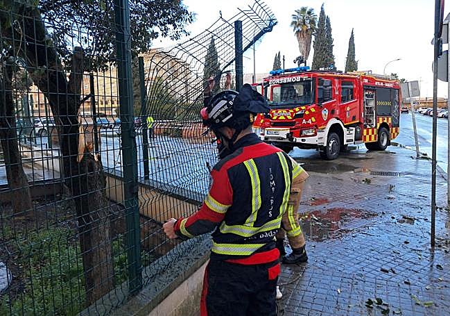 Tras recibir el aviso, los bomberos llegaron rápidamente al lugar del suces para cortar la rama partida, retirarla y volver a levantar la valla dañada.