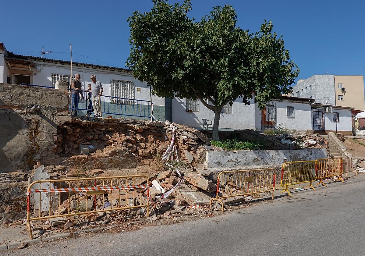 Bonifacio Rodríguez vive desde hace 36 años en Santa Engracia, también conocido como Las 800. Su casa, en las traseras del barrio, tiene vistas de ... la carretera de Cáceres. Este jubilado suele sentarse en el muro que cierra el acerado de su calle y fumarse un cigarro. El pasado 14 de diciembre repitió esta rutina, se levantó, entró en casa y el muro en el que había estado sentado se desplomó. «Si llego a estar sentado, me mato», reconoce este vecino. El derrumbe afectó a una familia que justo estaba aparcando su coche debajo del muro. Afortunadamente no hubo heridos, aunque el vehículo sí sufrió daños.