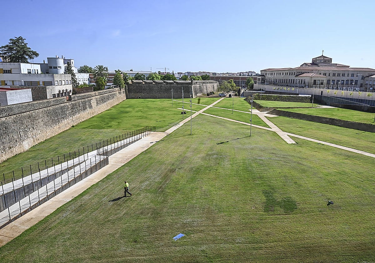 Qué es. Se despejan 500 metros lineales de la muralla abaluartada con una explanada de césped y caminos en 20.000 metros cuadrados. Han rehabilitado los cuerpos de guardia encontrados y los restos del revellín. Remodelación de la calle Stadium, empedrada y con miradores para apreciar la muralla. Se ha eliminado la calle Hermanos Merino, que era cercana al Palacio de Congresos. Por ahí se ha dejado abierta una puerta para que puedan pasar los peatones del Casco Antiguo a Pardaleras, y viceversa.