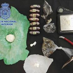 Los agentes intervinieron un total de 825 gramos de hachís, 244 gramos de 'speed' (sulfato de anfetamina), 72 gramos de marihuana y una báscula de precisión, así como gran cantidad de recortes de plástico de los utilizados para suministrar la droga y diversos útiles para el cultivo interior de marihuana (filtros, iluminación, termómetros, etc.).