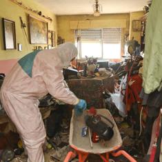 Se trata de un caso que se puede identificar como 'síndrome de Diógenes' y la Consejería de Sanidad y Políticas Sociales ha decidido intervenir después de conocer la situación de este vecino, Francisco Gil, el pasado martes, cuando se llevó a cabo un lanzamiento de vivienda, que estaba desocupada, en este mismo bloque de pisos sociales propiedad de la Junta de Extremadura.