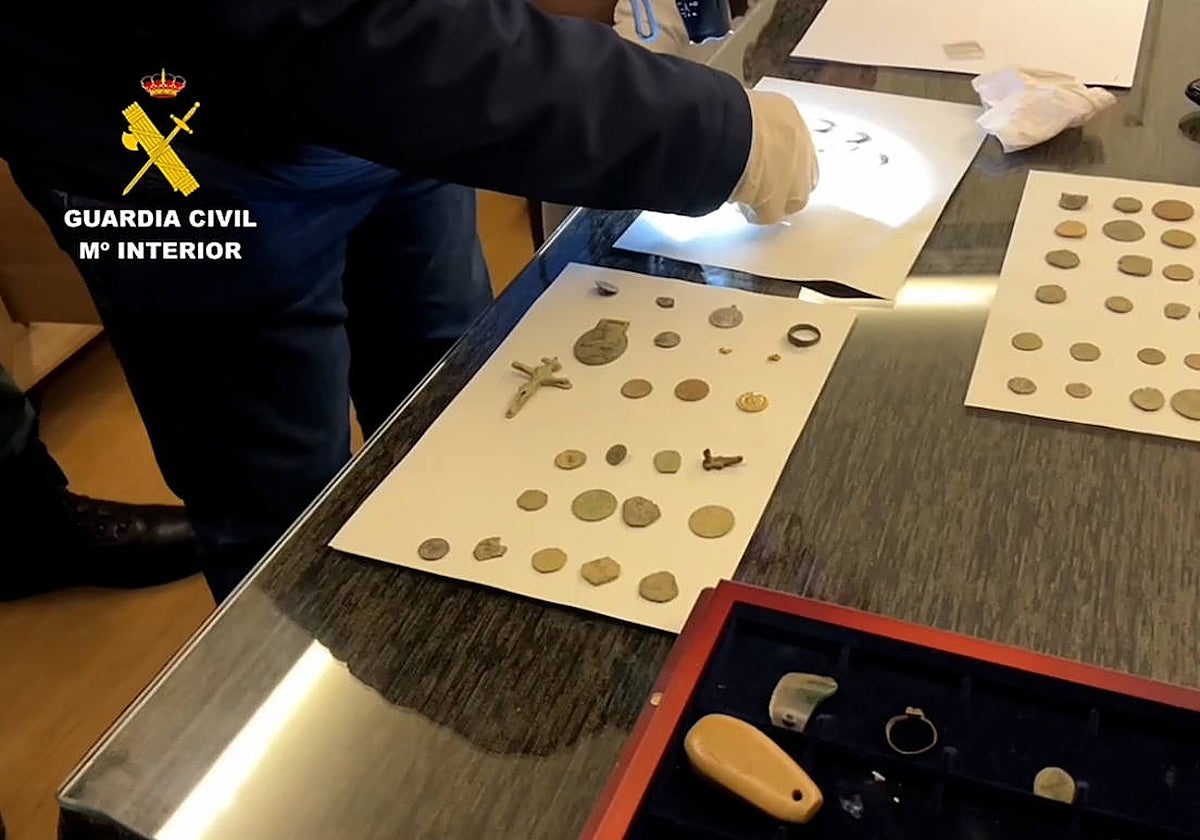 La Guardia Civil, en el marco de la operación Tamussia, ha desarticulado un grupo criminal asentado en la localidad cacereña de Moraleja, dedicado al expolio indiscriminado de enclaves de gran relevancia histórica, arqueológica y patrimonial. Los agentes, pertenecientes al Servicio de Protección de la Naturaleza (Seprona) de la Comandancia de Cáceres, han recuperado 2.500 piezas de interés arqueológico, mayoritariamente monedas que datan de la antigua Roma.