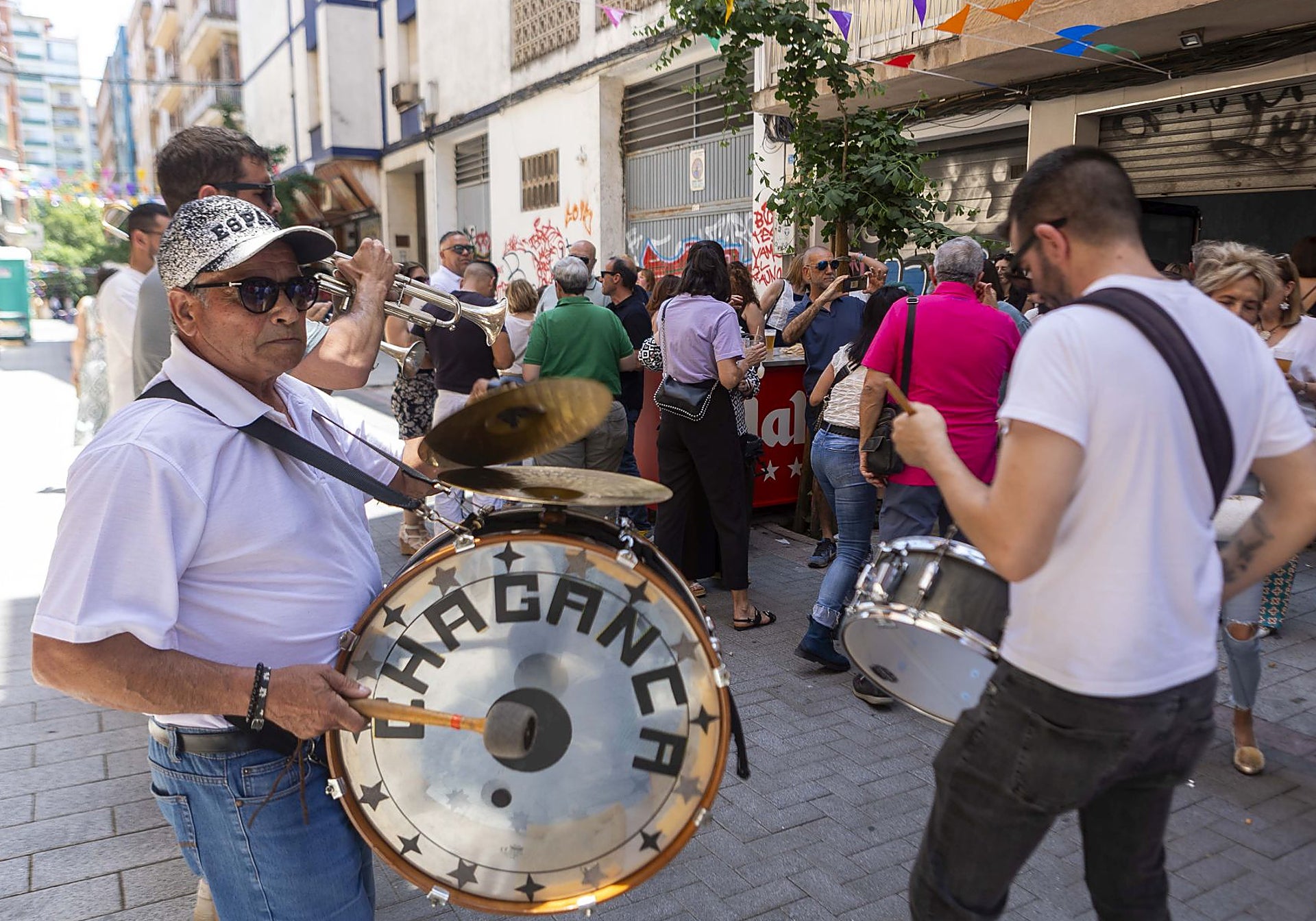 Desde Torrecillas de la Tiesa se desplazó Follow the leader, la otra charanga que amenizó la tarde en la zona de bares y restaurantes situada en las inmediaciones de Cánovas. A las 15.00 horas sus integrantes se arrancaron con un pasodoble en la esquina de Obispo Ciriaco Benavente y San Pedro de Alcántara.