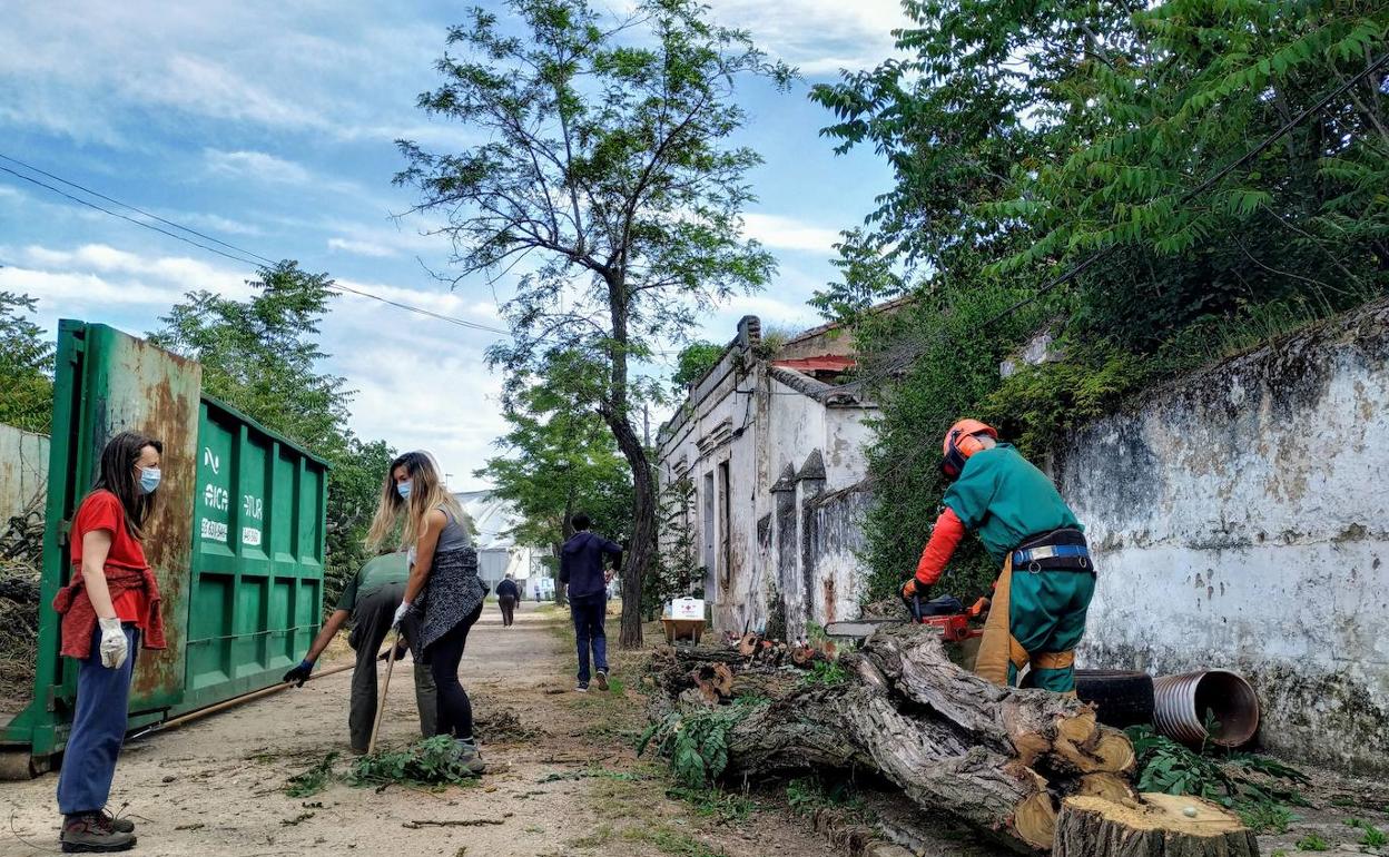 Varios colectivos de Aldea Moret limpian y desbrozan calles y parcelas para llamar la atención sobre el abandono de este BIC