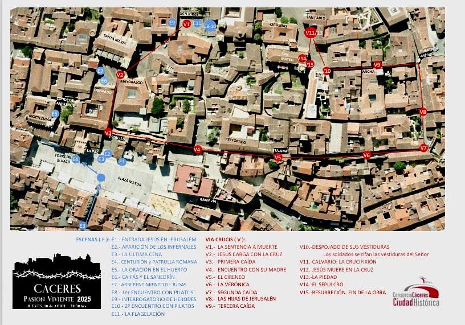 La acción como tal arrancará en la Plaza Mayor con la escena de la entrada triunfal de Jesús en Jerusalén. Cada año la asociación elige a un actor diferente para encarnar al protagonista. Y en esta ocasión el elegido ha sido Pablo Mejías López (Cáceres, 1992), antiguo alumno de la Escuela Superior de Arte Dramático de Extremadura (ESAD), que también ha asistido a la presentación de esta mañana. Marcos Yépez, director del montaje, ha recordado que el número total de pasajes, contando las dos nuevas incorporaciones, se eleva a 27.