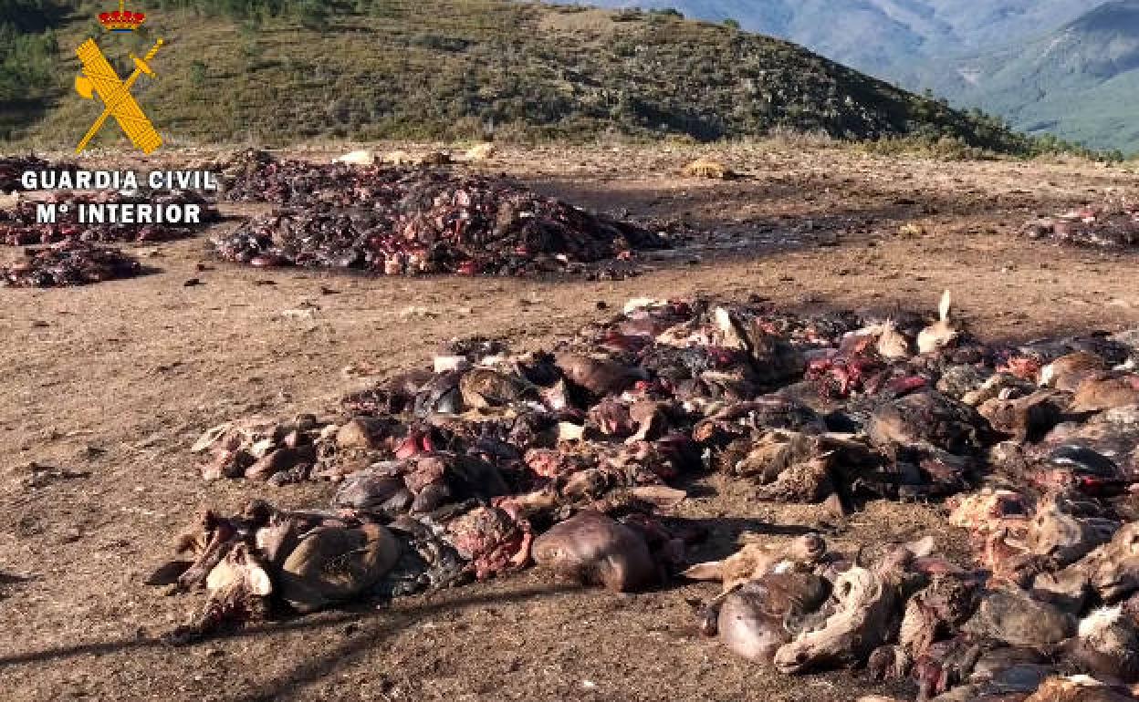 El Seprona indica que hubo, «un total de 500.000 kilogramos de subproductos que no fueron entregados en las plantas de tratamiento o destrucción conforme establece la normativa reguladora, procediendo, en su lugar, a depositarlos en muladares a disposición de la fauna silvestre, sin obviar otros perjuicios graves para el medio ambiente».