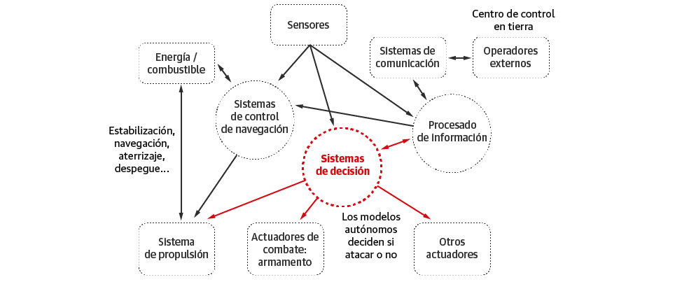 Hablamos de los LAWS, o sistemas letales autónomos, por su sigla en inglés, un tipo de armamento diseñado para tomar decisiones a partir del análisis, en tiempo real, de los datos que recopilan sus sensores y los que obtienen de la 'nube'. Es una tecnología que imita el funcionamiento del cerebro humano, basada en el aprendizaje automático (ML) ylas redes neuronales de aprendizaje profundo (DL), dos técnicas que permiten a los robots aprender y mejorar permanentemente sin necesidad de supervisión humana. Traducido al marco de la guerra, son sistemas que pueden determinar a quién matar y quién no, sin que un soldado que los controle, simplemente cruzando información.