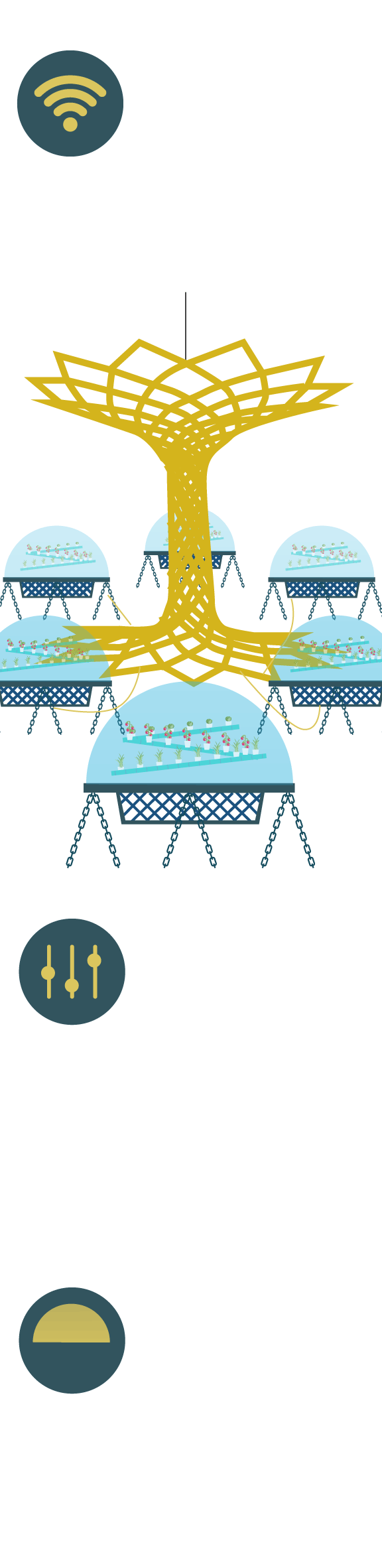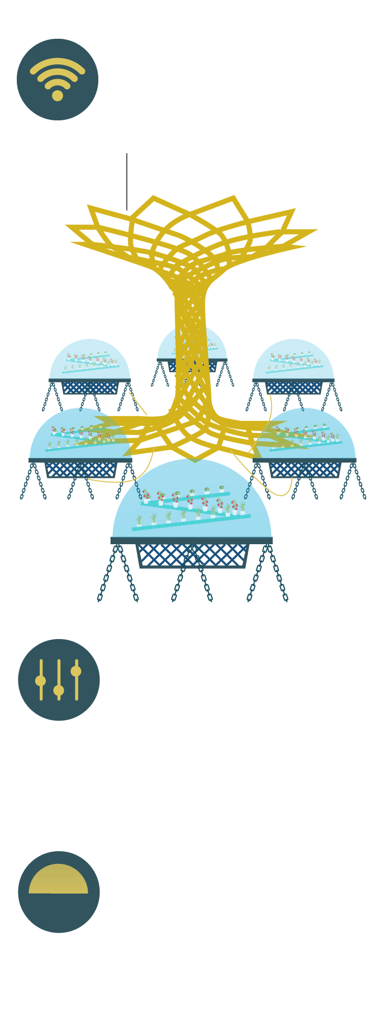 Los sensores controlan varios parámetros, como la concentración de CO2 y de oxígeno, así como la intensidad de la luz y la humedad.