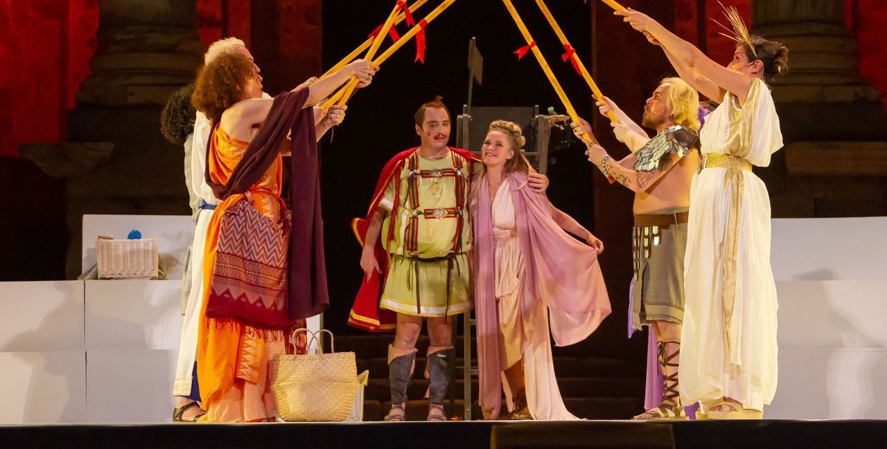 El domingo, 15 de agosto, será el turno de ‘La comedia de la cestita’ o ‘Cistellaria’, una función del comediógrafo Plauto montada por Pepe Quero. El festival no podía clausurarse con una opción mejor. La trama de esta obra se centra en la inauguración del teatro de Emérita Augusta en el año 15 a. C., que tendrá como invitado especial al propio autor de comedias Plauto, un personaje más de esta función.