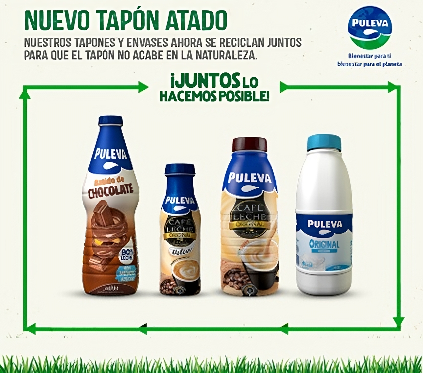 Para ayudar a reciclar, Lactalis Puleva está incorporando en todos sus envases información de gestión de residuos para informar a las personas consumidoras dónde reciclar los envases. Además de logotipos de gestión de residuos, la compañÃa ha completado la introducción del tapón atado en sus envases conforme a la directiva europea que los regula. Gracias a este proyecto, que ha supuesto la modificación de 31 lÃneas en 4 plantas, las personas consumidoras pueden depositar tapón y envase en el contenedor amarillo, evitando que el tapón se pierda en el circuito de reciclaje y que pueda acabar en la naturaleza.Â