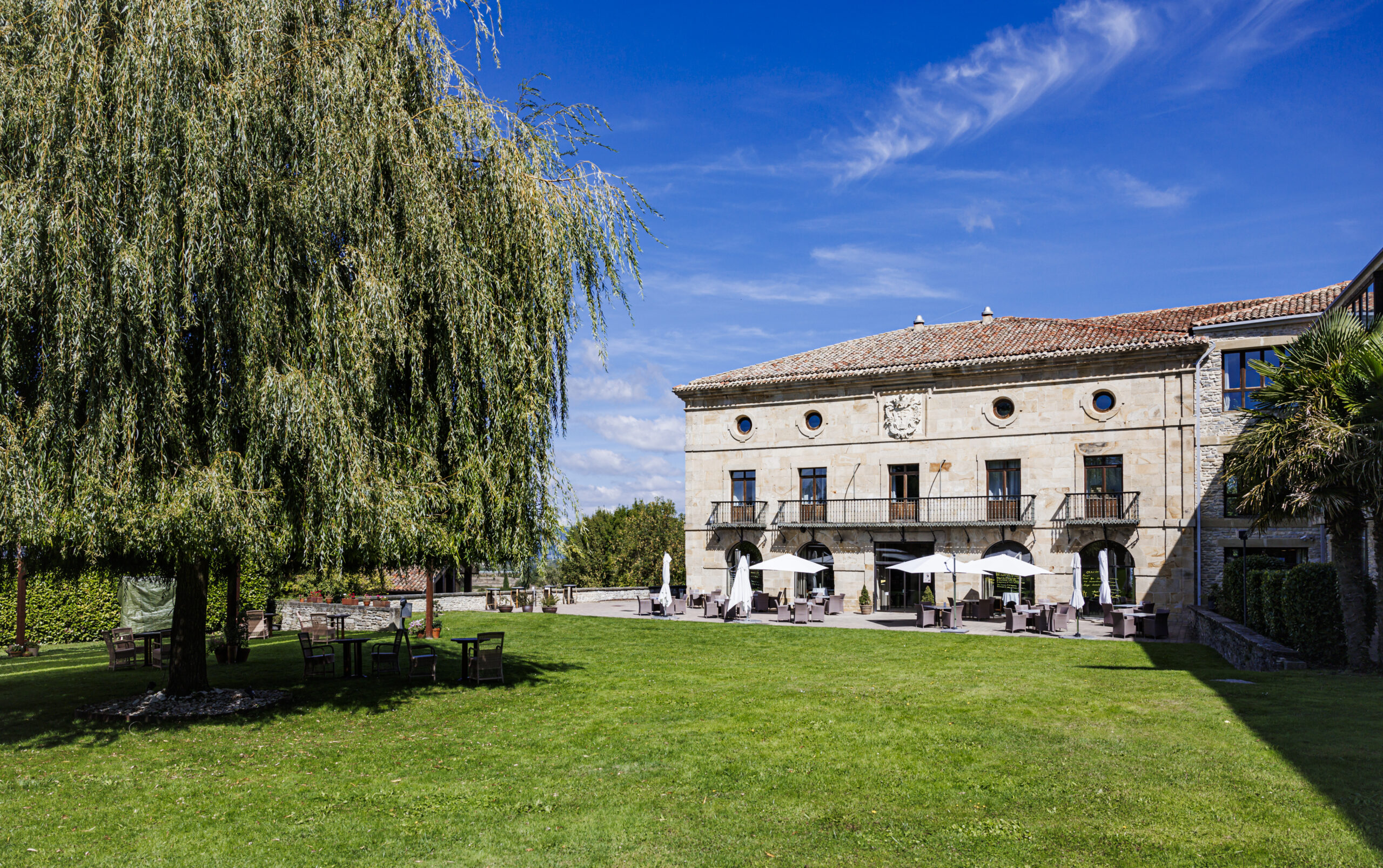 Originalmente propiedad del Virrey de México, el palacio pasó a la familia Larrea, quienes realizaron importantes aportaciones al edificio. “La familia Larrea dotó al edificio de rejería eclesiástica, mampostería y heráldica”, explica Manuel. Además, la última planta era el granero, donde hoy se ubica el salón-restaurante. Al subir las escaleras que conducen al gran salón, uno puede contemplar la cubierta donde queda a la vista la viguería, que se soporta gracias a las filas paralelas de pilares de madera. Resulta llamativo, por su carácter imponente, el entramado que no posee ningún anclaje metálico. Allí, esa presencia de la madera convierte al restaurante en un lugar donde la comida se disfruta de otra manera, sobre todo porque las ventanas de ojo de buey dan a la Llanada y los comensales pueden contemplarla mientras disfrutan de la comida.