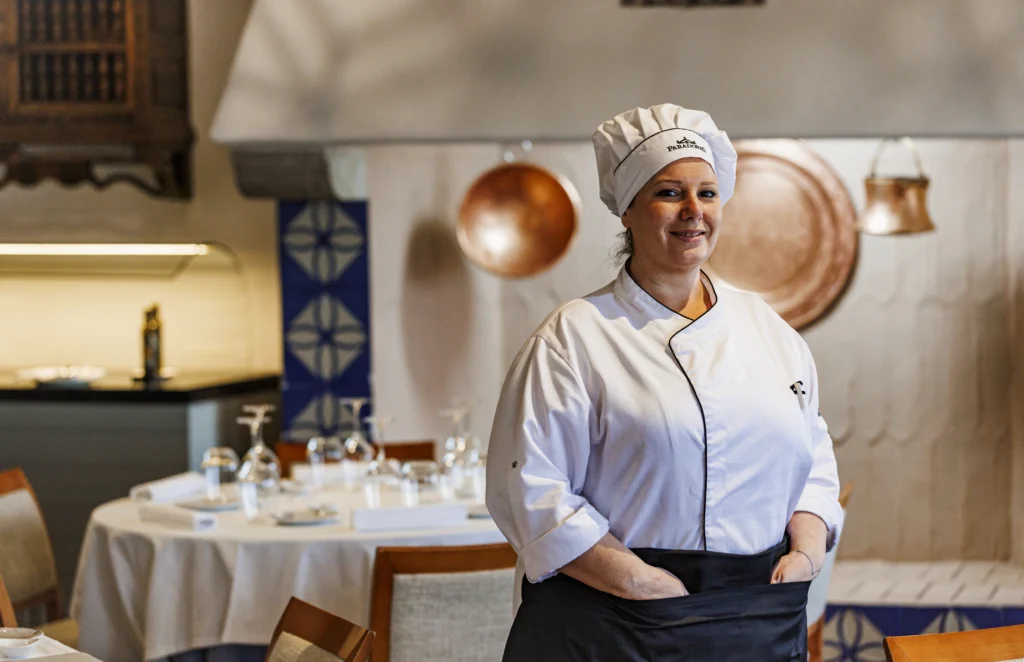 La cocina, por más reglas que tenga, nunca será una ciencia, sino un arte. Cada cocinero tiene una concepción particular de los fogones, un sentido estético y culinario únicos que canalizan sus personalidades o las enseñanzas de una escuela u otra. En el Parador de Arcos de la Frontera, ocurre un fenómeno sorprendente. Se llama May Torres. Nacida en el Puerto de Santa María, esta gaditana no se entretiene hablando de técnicas, al contrario; ella mira a las sensaciones y la enseñanza más importante que ha tenido nunca en la cocina: su abuela Mari Ángeles. “Ella siempre decía que debemos darle a la tierra todo el amor que nos da con sus ingredientes”, explica. La sencillez de la sopa de tomate que ella elabora es como la que hacía Mari Ángeles cuando May era pequeña: “Cuando la cocinaba yo la reverenciaba”. La buena materia prima y un corazón generoso son suficientes para trascender algo tan complejo como la herencia gastronómica de la provincia de Cádiz.