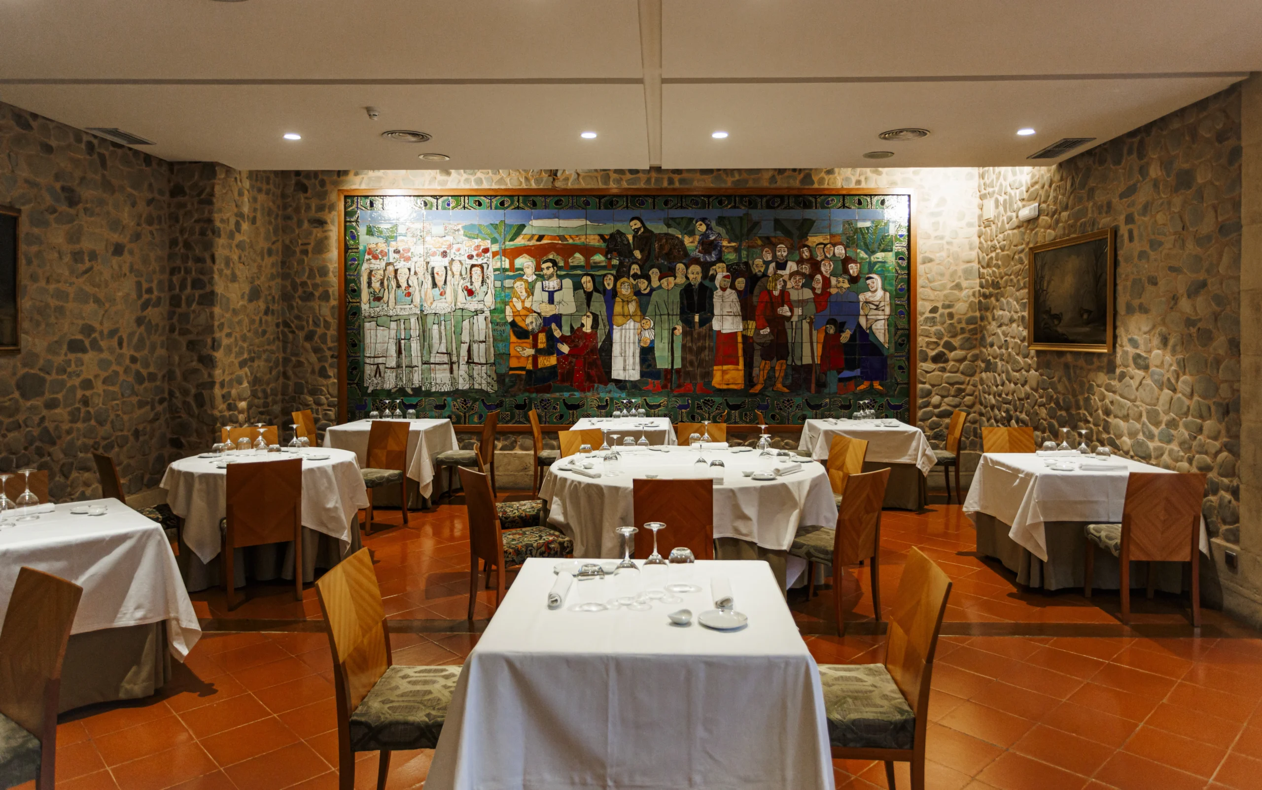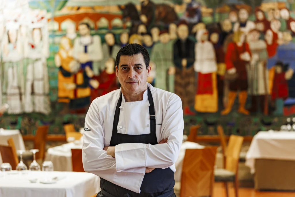 El jefe de cocina del Parador de Santo Domingo de la Calzada se llama Joxean Manero, un chef con ascendencia riojana y vasca. “Desde pequeño —cuenta— me gustaba estar en la cocina con mi madre, una cocinera excepcional”. Fue con ella con quien descubrió “esa sensación de placer que no es disfrutar de la comida, sino ver a otro disfrutar lo que uno ha preparado”. Joxean tuvo que elegir entre ayudar a su madre en la cocina o ayudar a su ‘aita’ que era camionero. Fue entonces cuando Joxean descubrió esa “sensación” de la cocina a la que se apasionó; y quizá por eso es un hombre que siempre está pensando cómo puede mejorar un plato o su presentación. Explica que para él la cocina “es un estilo de vida”. La carta del Parador de Santo Domingo es como un “long play”. Hay una cara ‘A’, que representa la tradición que caracteriza la red de Paradores. Basada en la cocina típica riojana: el bacalao, las patatas o la menestra. Luego, tenemos la cara ‘B’, donde encontramos la parte más innovadora que, por supuesto, “respeta también la tradición, pero con esa vueltita para llamar la atención”. Un ejemplo pueden ser los raviolis rellenos de manitas de cerdo y aceitunas. Joxean explica que estos raviolis “son una forma excepcional de probar la casquería que, personalmente, me encanta”.