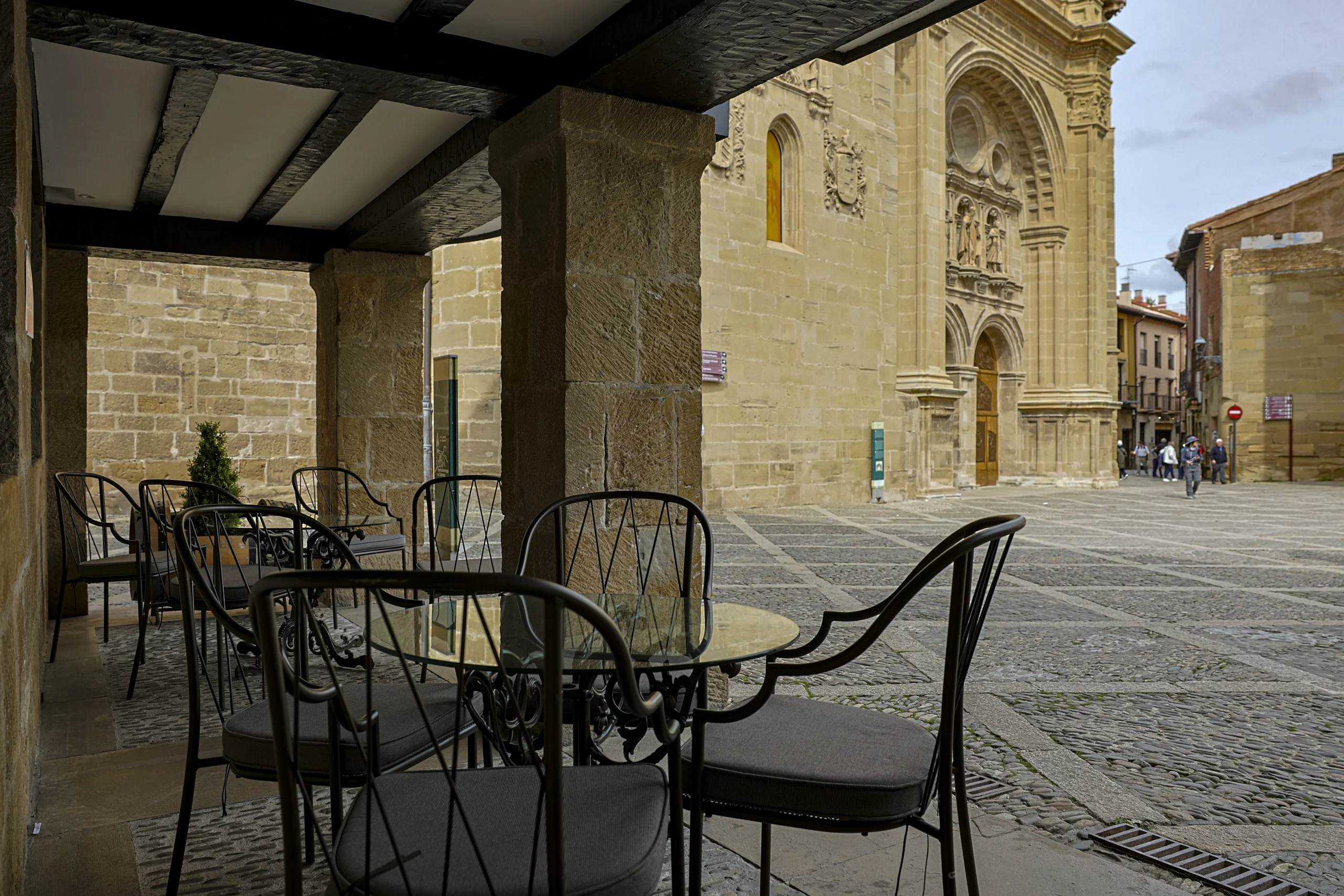 Desde las habitaciones se puede ver la plaza de la catedral, fundada en el siglo XI. Es pequeña y encantadora y con una mezcla de estilos únicos que pasean cómodamente entre el románico, el gótico y el barroco. Contemplarla es una delicia y es al hacerlo cuando es menester evocar una leyenda a la que este templo se encuentra vinculado: la del milagro del gallo y la gallina. Según la leyenda, un joven fue mandado a la horca injustamente, pero gracias a la intercesión de Santo Domingo pudo salvarse. Fue entonces cuando un gallo y una gallina, ya asados, cantaron para demostrar la inocencia de este muchacho. Una historia que ha dejado una singularidad en este lugar. Esta catedral es única en el mundo porque esconde un gallinero; no existe otra en ningún lugar con tal permiso. Y es que el Papa Clemente VI dio su beneplácito para que en ella pudiese haber un gallo y una gallina en conmemoración del milagro.