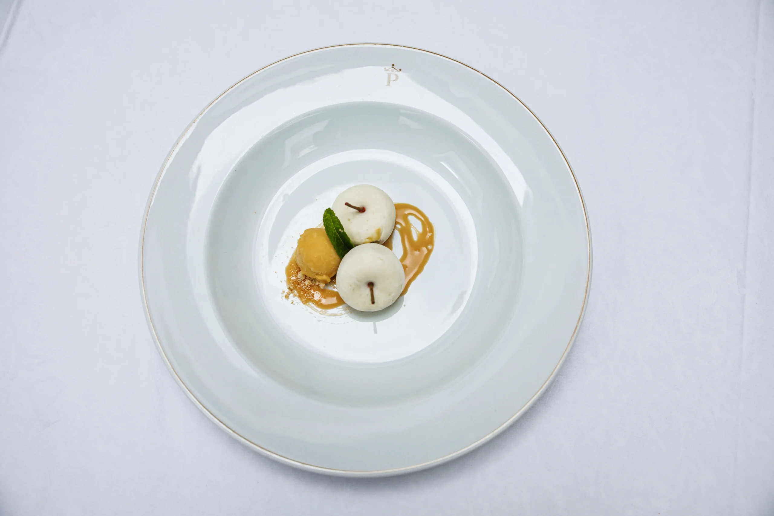 ¿De postre? ‘La pera que quería ser manzana’: se trata de una pera cocida, que se inserta en un molde de silicona con forma de manzana y se baña una verde y otra roja. Así, este trampantojo es un final dulce y llamativo. Para los más tradicionales pueden probar las peras cocidas, que se presentan con yogur y crujiente de almendra en una reducción y con helado de aceite de oliva. “Son peras al vino de toda la vida, pero con esa ‘vueltita’”, concluye Joxean.