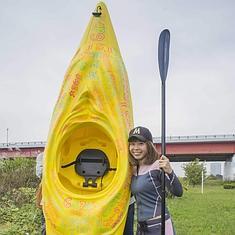 Megumi Igarashi posa junto a una de sus obras: un kayak con la forma de su vagina