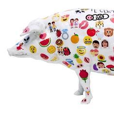'Afrancesado' ha cubierto la escultura de Luis Martínez Giraldo de emoticonos impresos en una lámina de vinilo impermeable. «Mi musa ha sido mi sobrina María, que tiene 12 años. Creo que la mejor manera de acercarme a ella era a través de un lenguaje que ella usa casi todos los días. A partir de ahí, y con la premisa de hacer algo sencillo, claro, directo y con mucho color, surgió la idea de usar emoticonos», apunta Silva, que añade que su intención era tener un gesto de cariño hacia el cerdo, hacer algo empático o que tuviera que ver con el amor hacia los animales. «Ahora casi todos los sentimientos nos los enviamos por Whatsapp o por las redes sociales y cada sentimiento tiene un emoticono. Aunque cada persona entiende los emoticonos de una manera diferente, entonces tiene el sentido que cada uno le quiere dar», explica 'Afrancesado', que ha obviado los emoticonos que tuviesen que ver con la carne ni con el cerdo como alimento, «porque uno de los mensajes que le quiero dar era que deberíamos empezar a tomar conciencia de como nos relacionamos con el entorno».