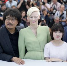 Parte del reparto de 'Okja', en el festival de Cannes.