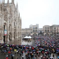 A pesar de la lluvia, fueron muchos los habitantes de Milán, la ciudad de acogida de Fo, pues el nació el 24 de marzo de 1926 en el pequeño municipio de Sangiano, provincia de Varese (norte), que acudieron a la capilla ardiente instalada en el Piccolo Teatro Strehler, y después en la plaza corearon su nombre.