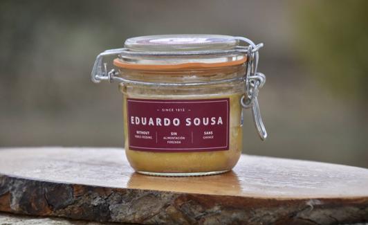 Una tarrina de 180 gramos de foie cuesta sobre 200 euros. Antes se comercializaban bajo la denominación 'Patería de Sousa', pero en el extranjero no sonaba bien y ahora se venden directamente como 'Eduardo Sousa'. Es prácticamente imposible encontrar este foie en una tienda que no sea gourmet.