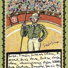 La obra del cantautor muestra a un picador y aparecen escritos los nombres de numerosos artistas que han defendido la tauromaquia