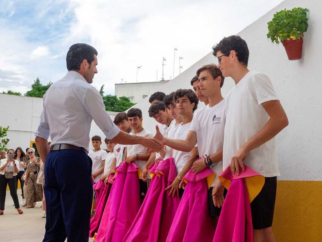 «Yo estuve en la escuela Taurina de Cáceres, coincidí mucho con Miguel Ángel Perera y Ambel Posada, que estaban en la Escuela de Badajoz y coincidimos en bastantes becerradas, y es una de las épocas más bonitas. Vosotros estáis viviendo la etapa más bonita del toreo porque son todo ilusiones y sueños que vais cumpliendo. Yo soñaba con vestirme alguna vez de luces, con torear en público. En los inicios está uno lleno de inocencia y de ilusiones y sueños», explicó.