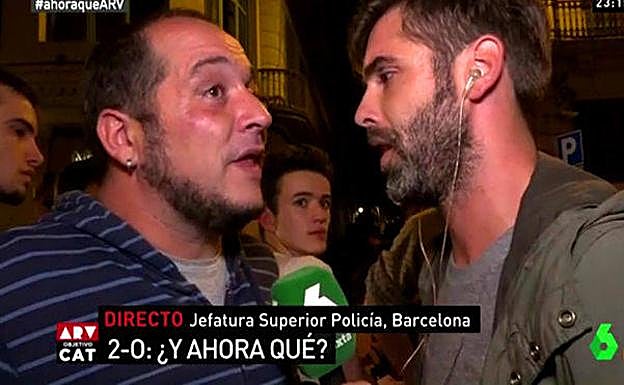 Otros de sus compañeros vivieron escenas similares días antes. El pasado lunes, José Yélamo, reportero de 'Más vale tarde', tuvo que pedir ayuda al exdiputado de la CUP David Fernández, que se encontraba cerca, para que mediara entre él y un grupo de personas que le estaban impidiendo realizar una conexión. Mientras que Anna Cuesta, también de La Sexta, era escoltada ese mismo día por los Mossos cuando informaba desde Calella, uno de los municipios donde se alojaban los agentes de la Policía Nacional desplazados a Cataluña. En el otro lado de la moneda, ayer mismo, la corresponsal en Madrid de la autonómica catalana TV3, Marta Viladot, denunciaba que le habían escupido mientras realizaba una cobertura desde la Audiencia Nacional.